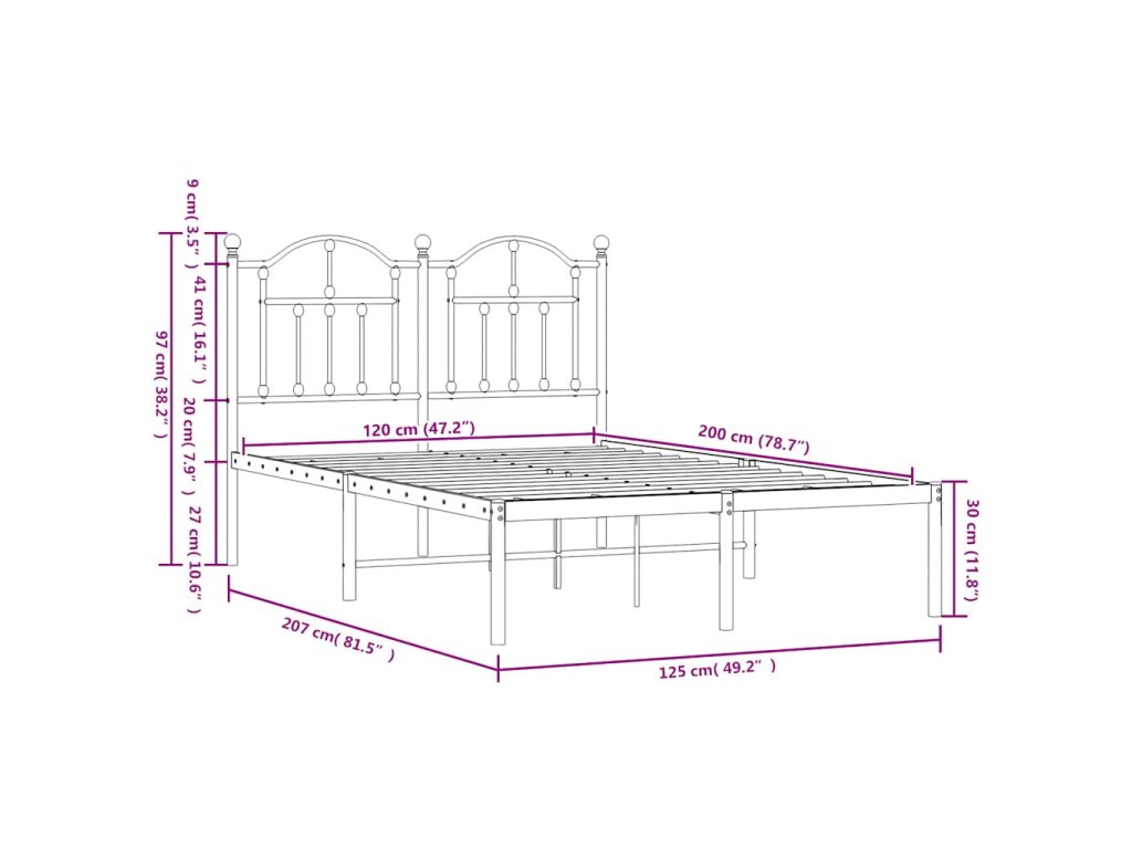 Kovový rám postele s čelem bílý 120 x 200 cm 353486