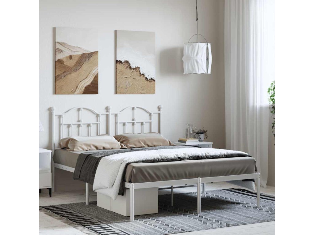 Kovový rám postele s čelem bílý 135 x 190 cm 353487