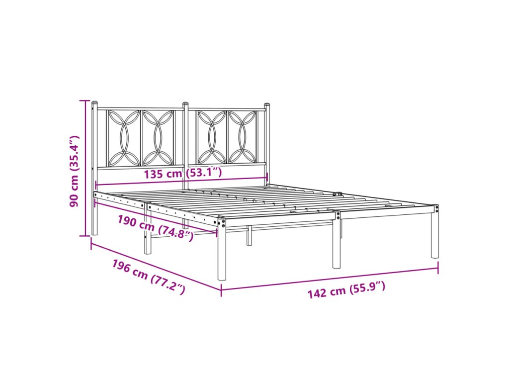 Kovový rám postele s čelem bílý 135 x 190 cm 376176