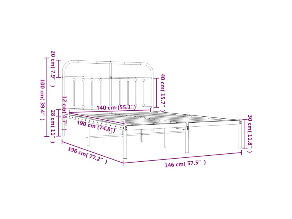 Kovový rám postele s čelem bílý 140 x 190 cm 352627