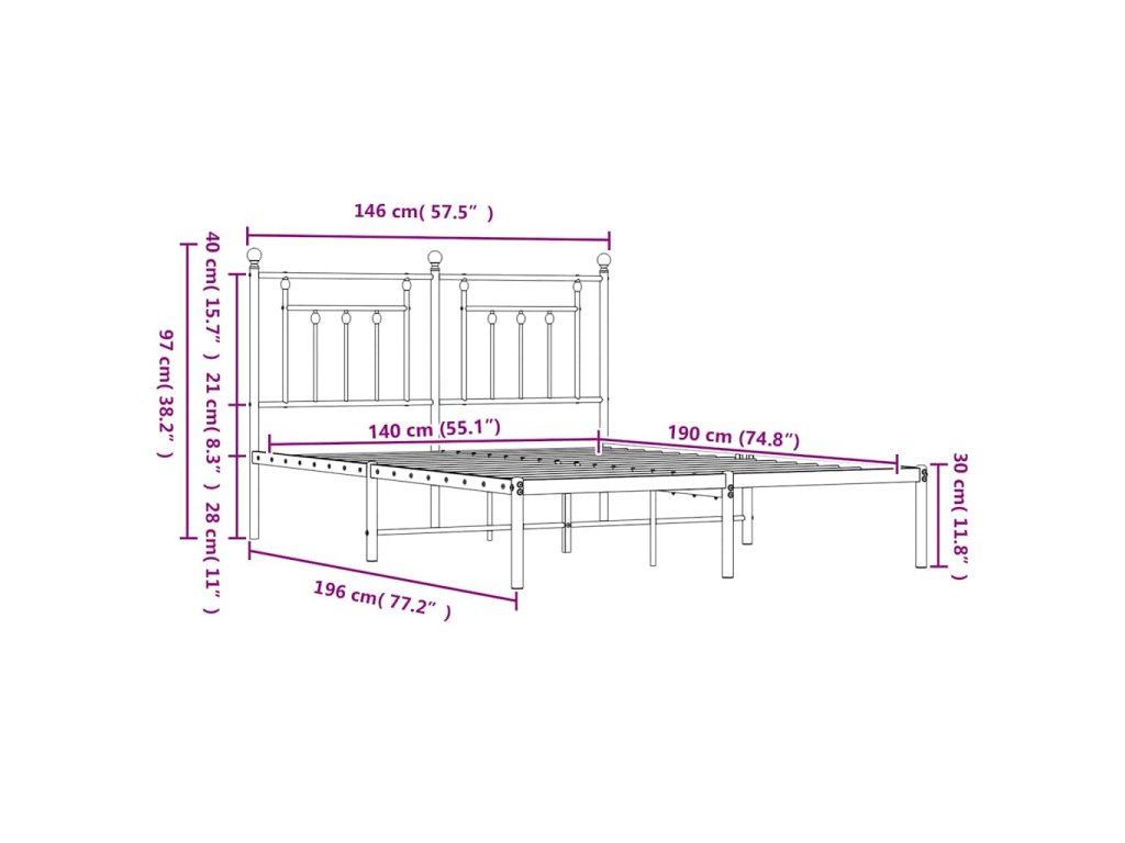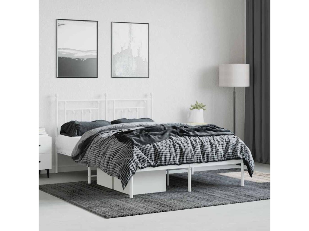 Kovový rám postele s čelem bílý 140 x 190 cm 353586