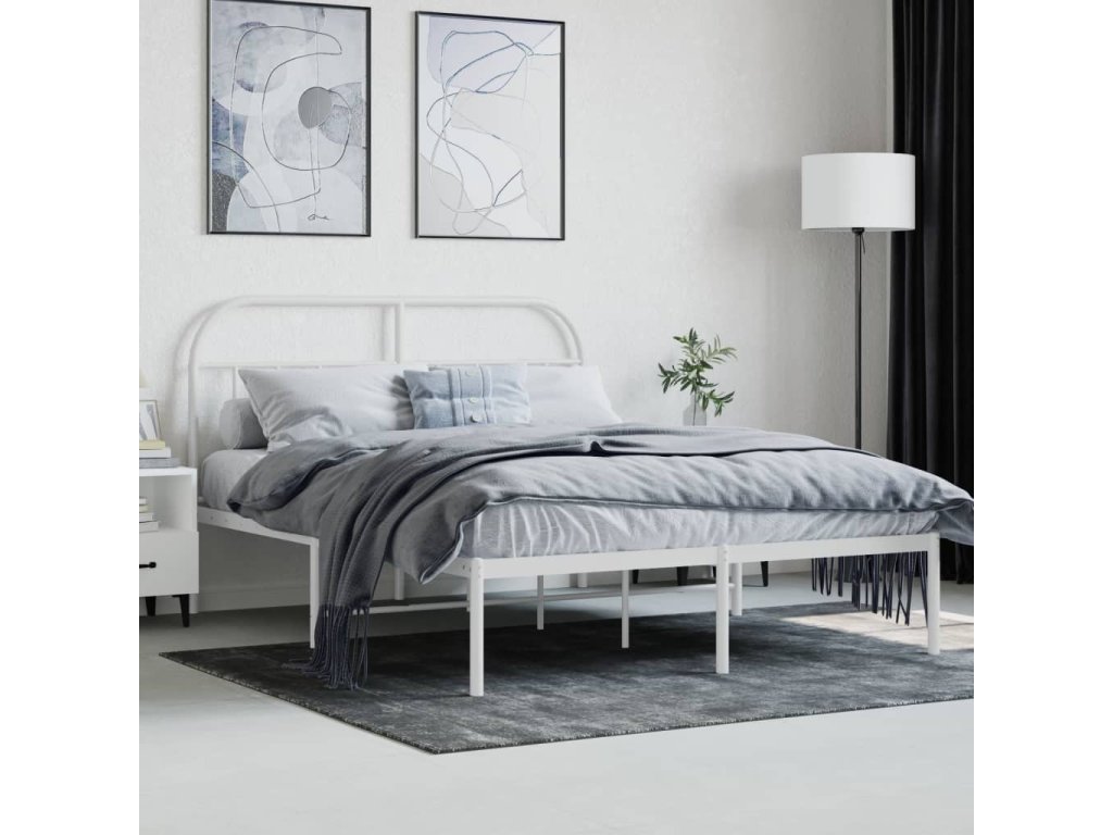 Kovový rám postele s čelem bílý 140 x 190 cm 353684