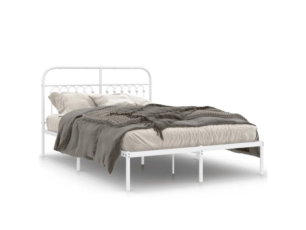 Kovový rám postele s čelem bílý 140 x 190 cm 376649