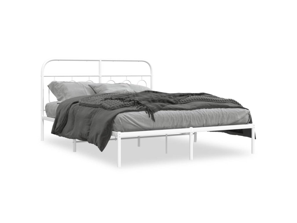 Kovový rám postele s čelem bílý 140 x 190 cm 377166
