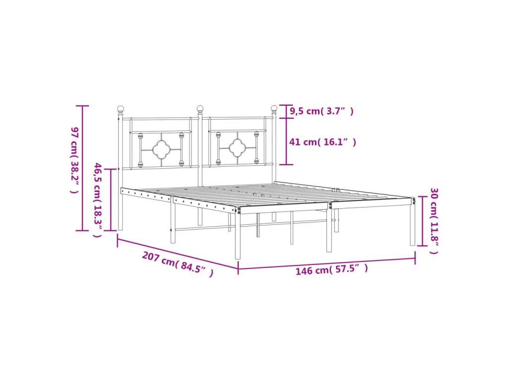 Kovový rám postele s čelem bílý 140 x 200 cm 374389