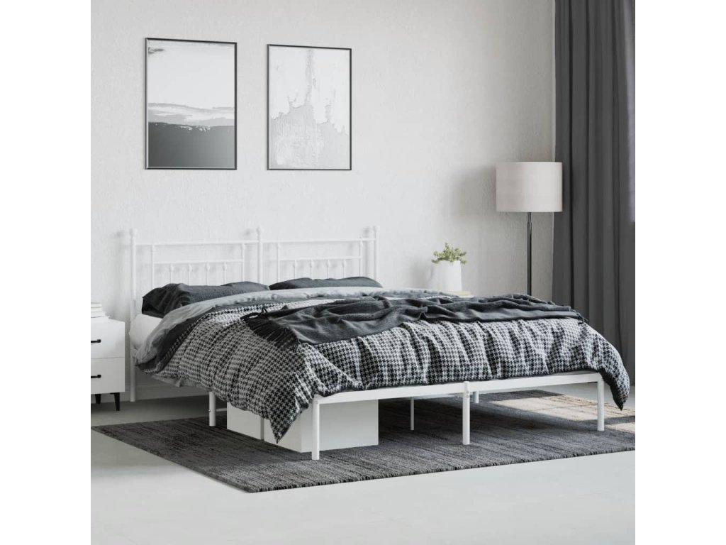 Kovový rám postele s čelem bílý 160 x 200 cm 353589