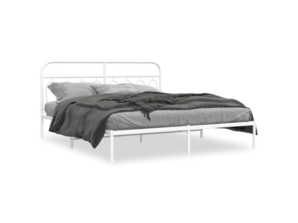 Kovový rám postele s čelem bílý 180 x 200 cm 377170