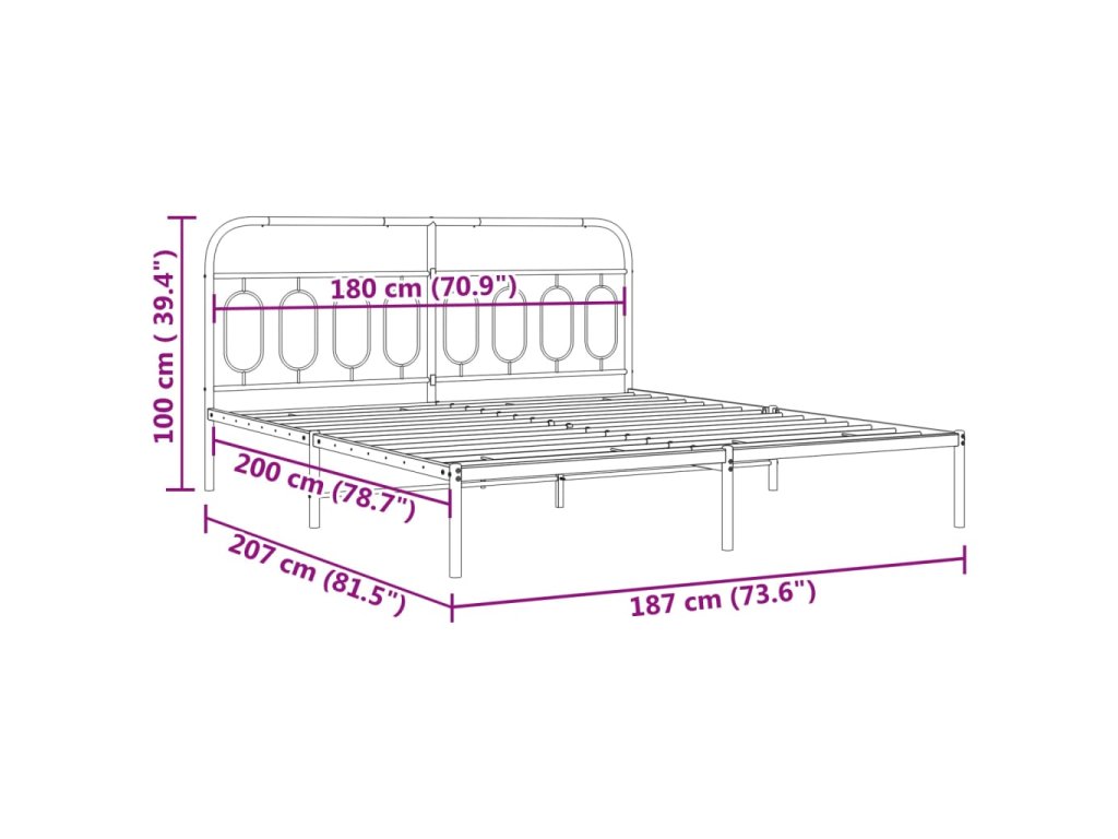 - Kovové lamely a nohy: Kovový rám postele je doplněn kovovými rošty a středovými nohami, které poskytují matraci tolik potřebnou oporu a prodyšnost.