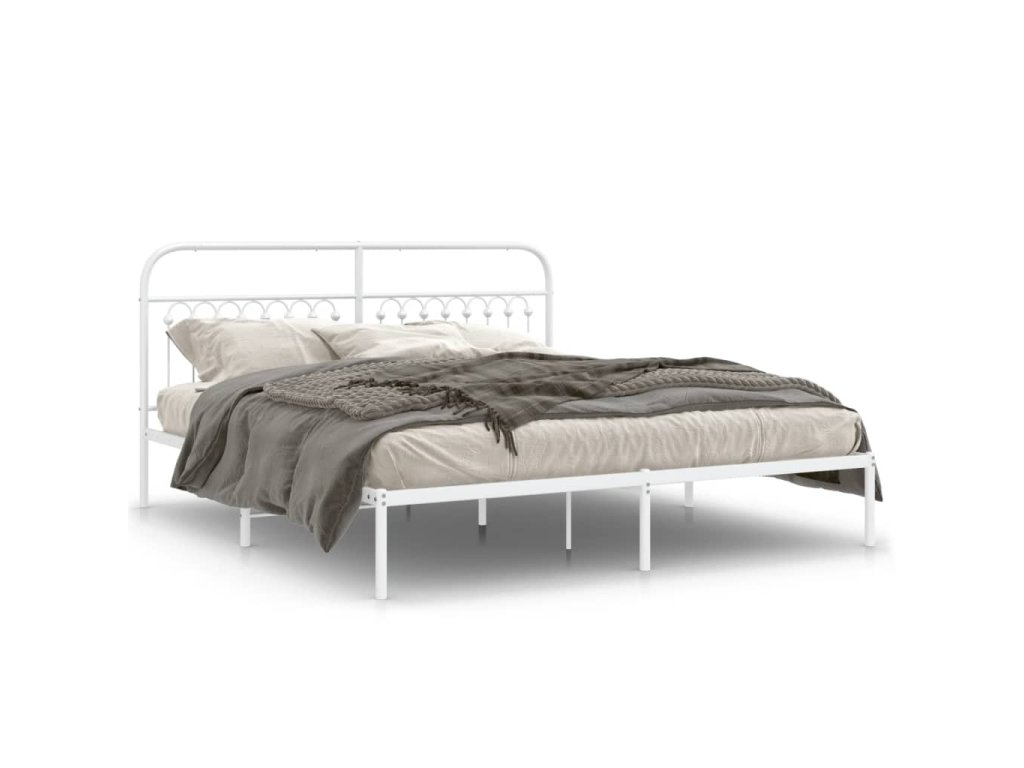 Kovový rám postele s čelem bílý 183 x 203 cm 376653