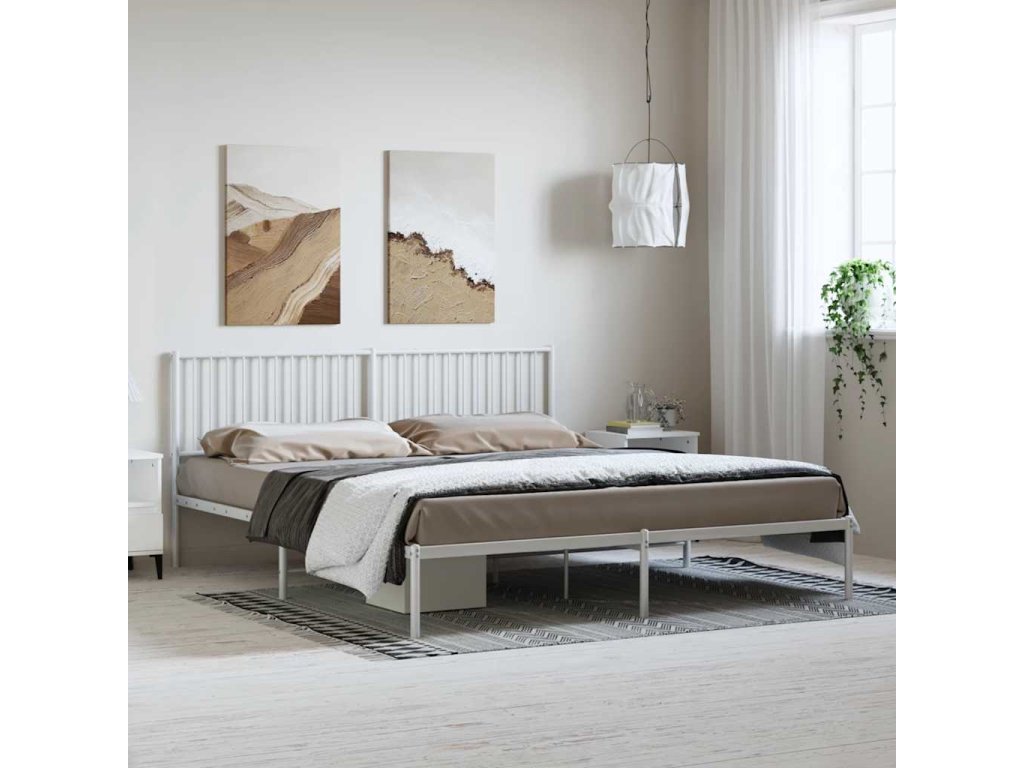 Kovový rám postele s čelem bílý 183 x 213 cm 350936