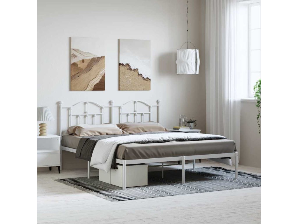 Kovový rám postele s čelem bílý 183 x 213 cm 353493