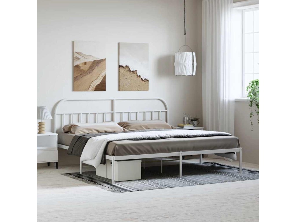 Kovový rám postele s čelem bílý 193 x 203 cm 353690