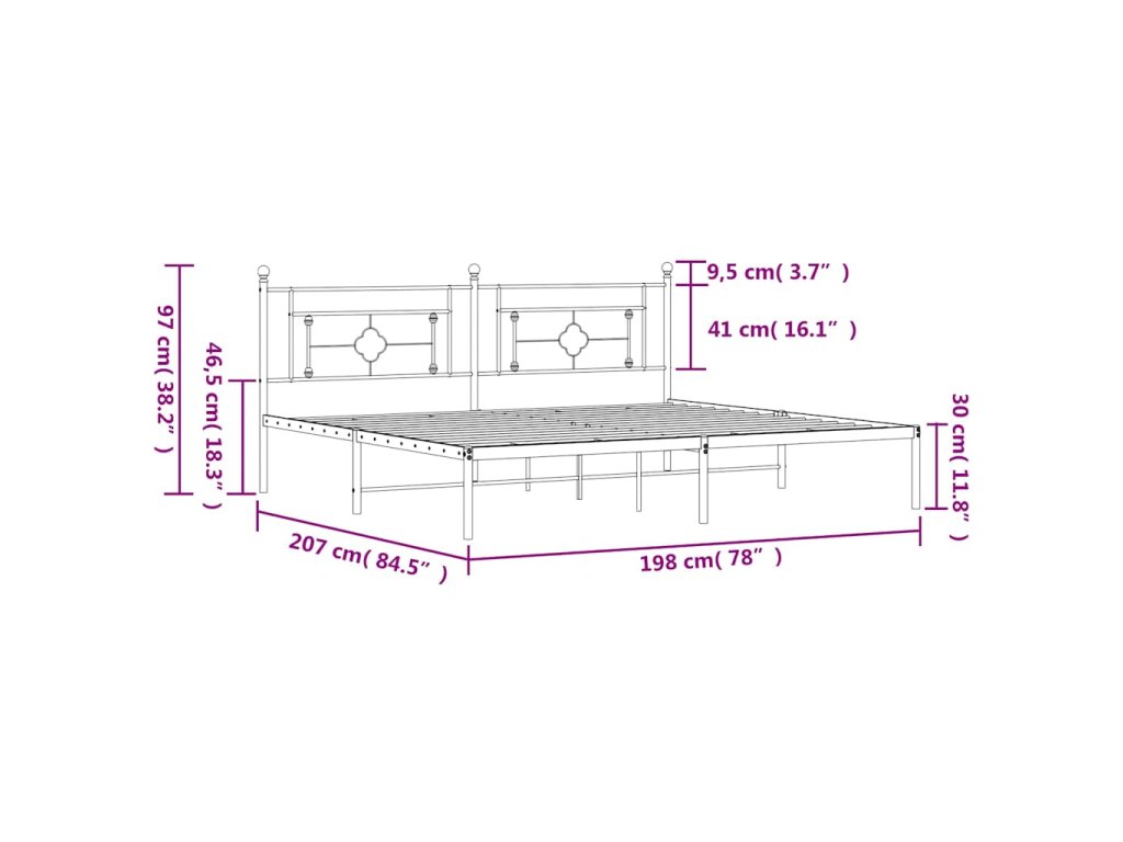 Kovový rám postele s čelem bílý 193 x 203 cm 374394