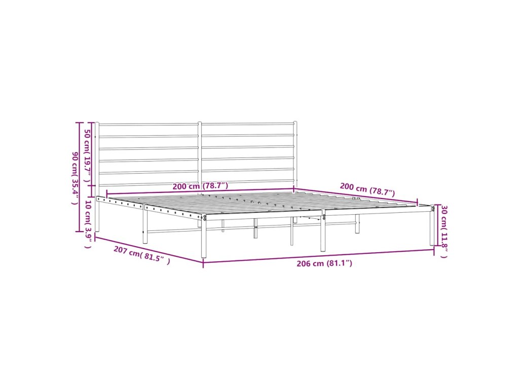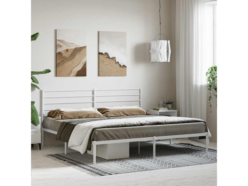 Kovový rám postele s čelem bílý 200 x 200 cm 352375