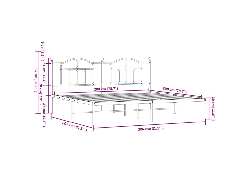 Kovový rám postele s čelem bílý 200 x 200 cm 353495