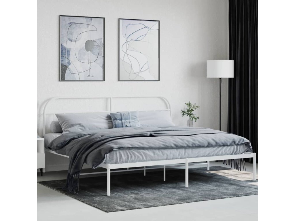 Kovový rám postele s čelem bílý 200 x 200 cm 353691