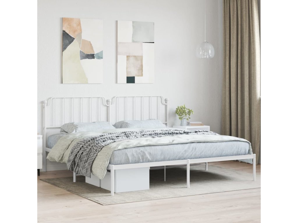 Kovový rám postele s čelem bílý 200 x 200 cm 373943