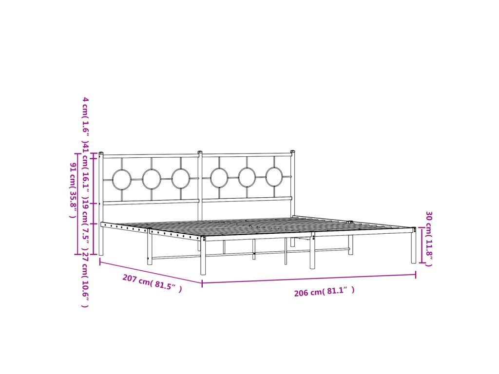 Kovový rám postele s čelem bílý 200 x 200 cm 376282