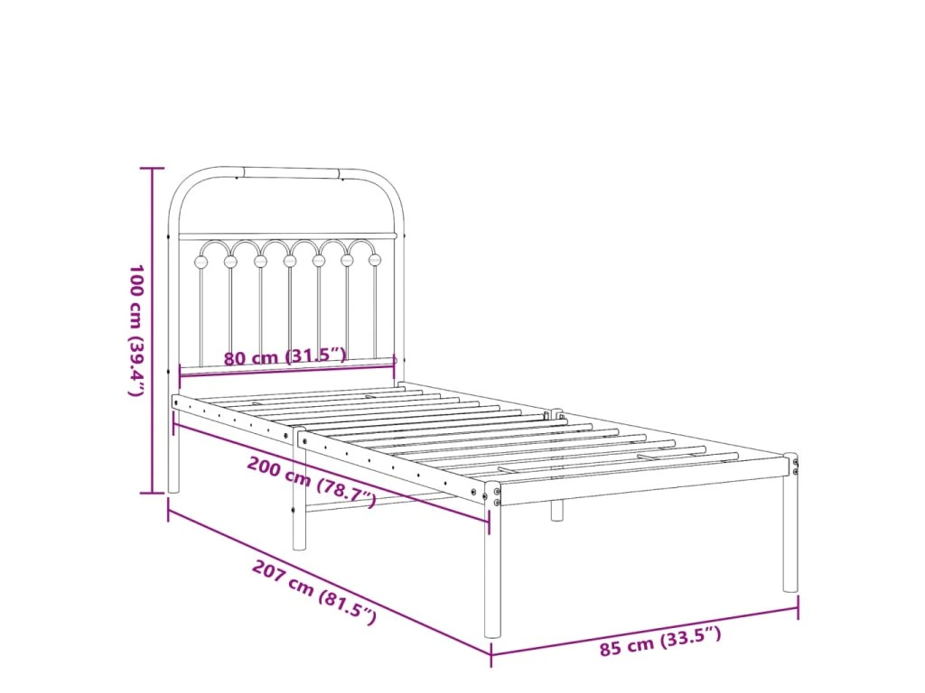 - Celkové rozměry postele: 207 x 85 x 100 cm (D x Š x V)