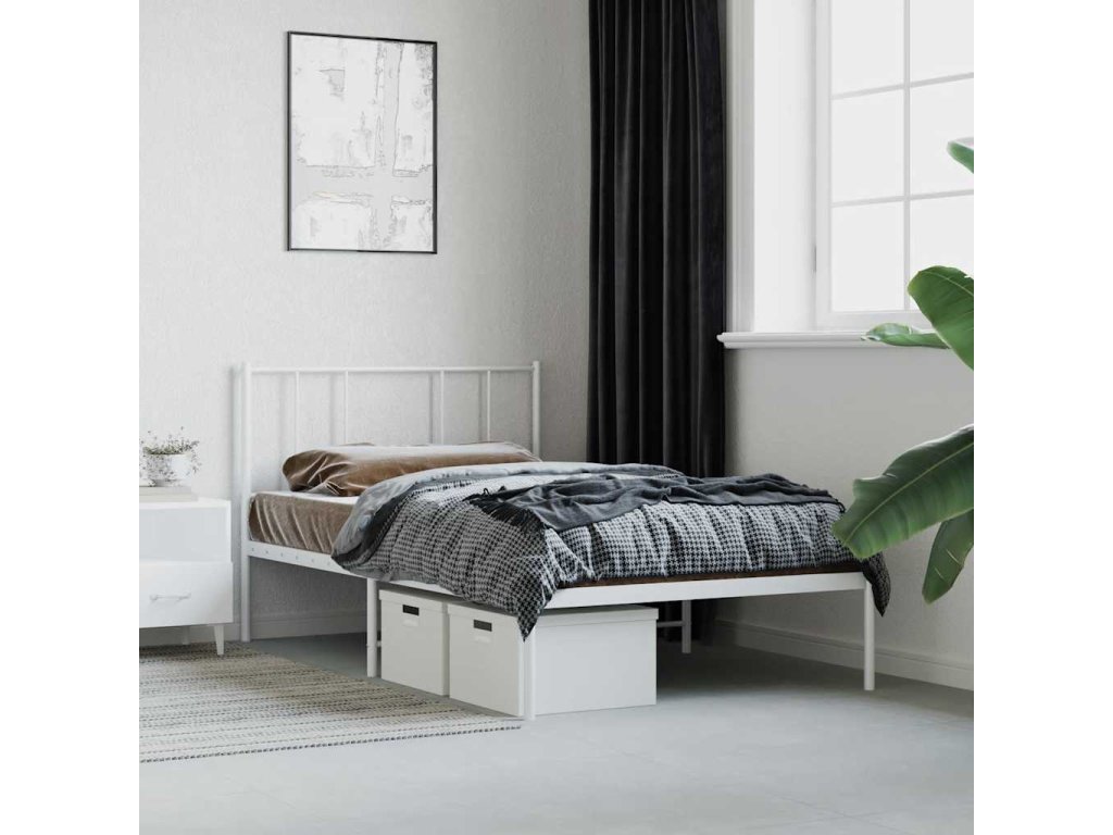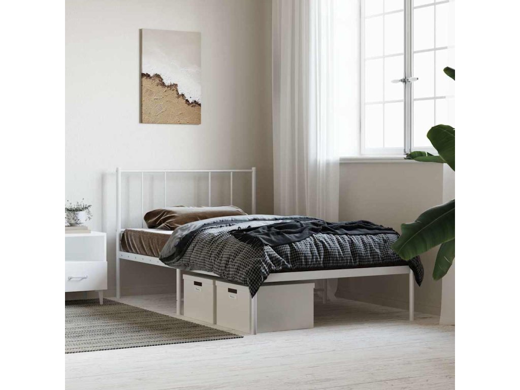 Kovový rám postele s čelem bílý 90 x 190 cm 352521