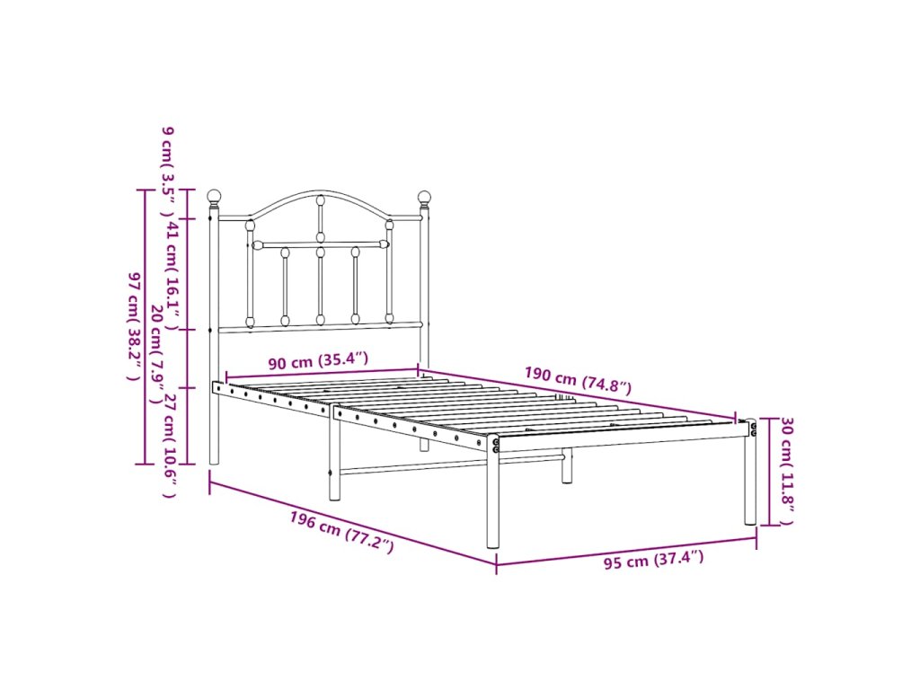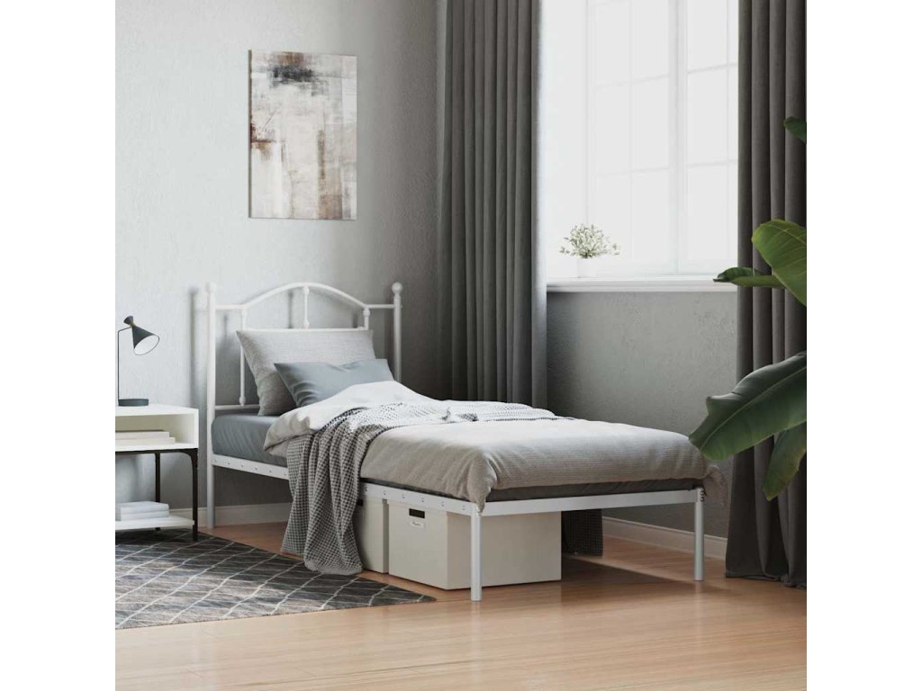 Kovový rám postele s čelem bílý 90 x 190 cm 353480