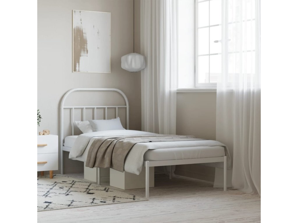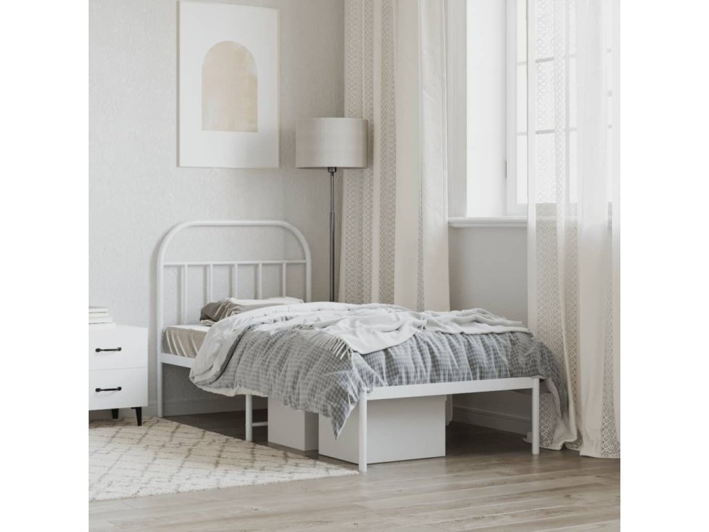 Kovový rám postele s čelem bílý 90 x 190 cm 353676