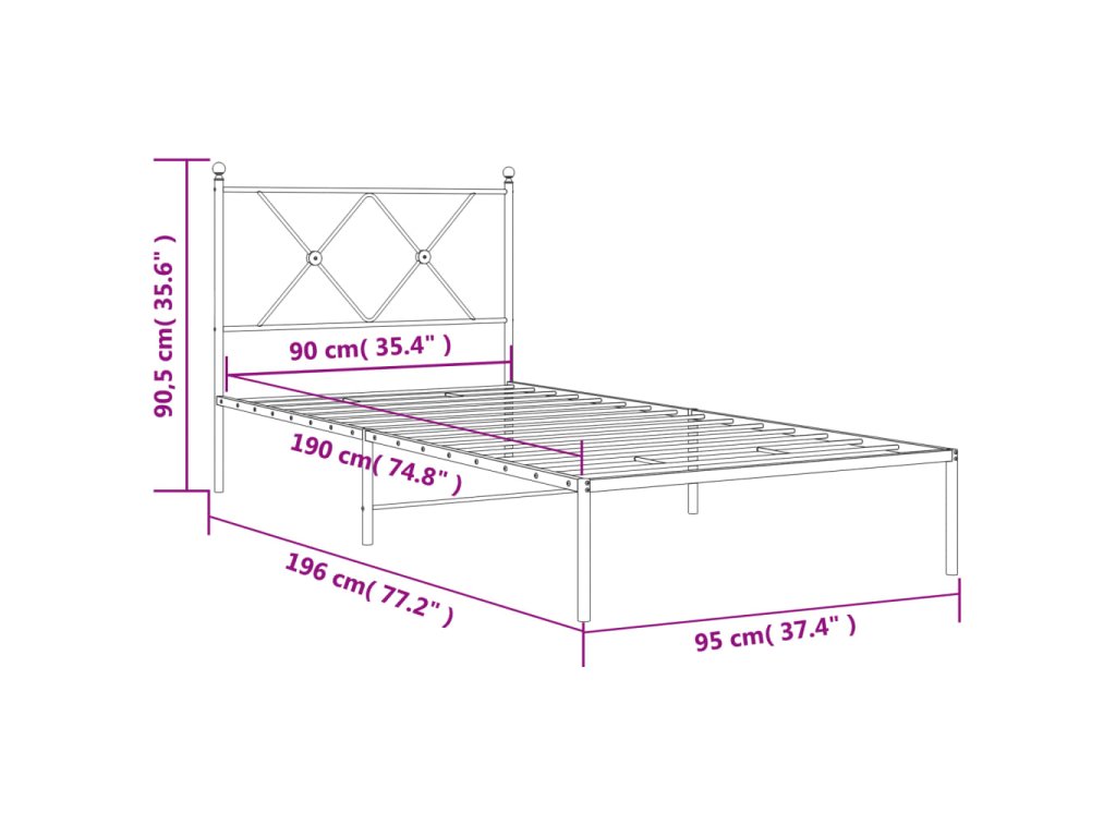 Kovový rám postele s čelem bílý 90 x 190 cm 376543