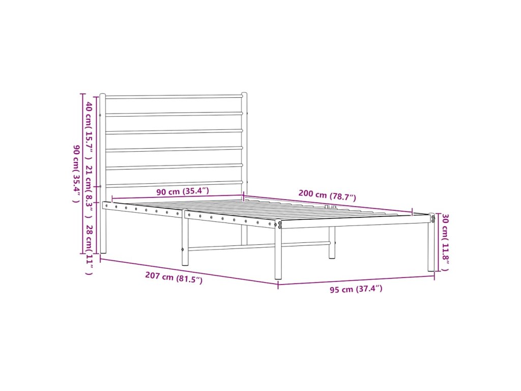 Kovový rám postele s čelem bílý 90 x 200 cm 352361