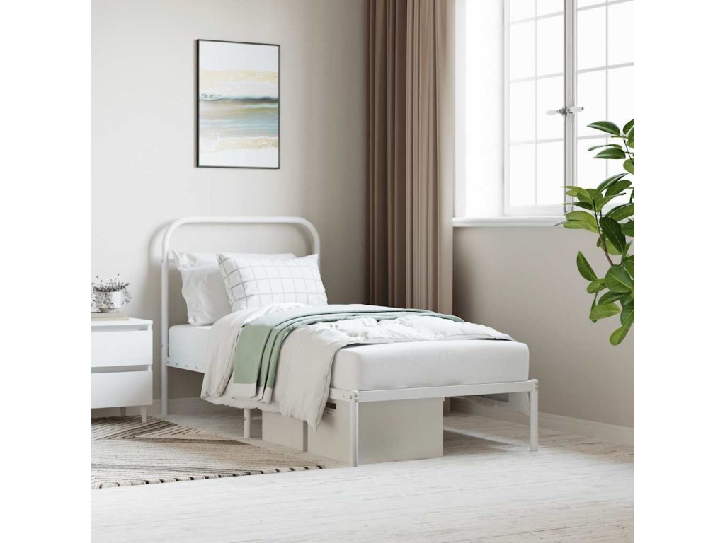 Kovový rám postele s čelem bílý 90 x 200 cm 352620