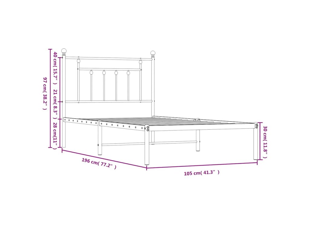 Kovový rám postele s čelem černý 100 x 190 cm 353531