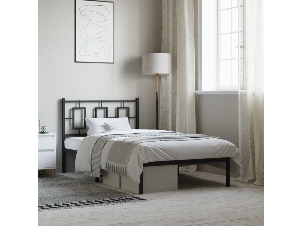 Kovový rám postele s čelem černý 100 x 190 cm 374235