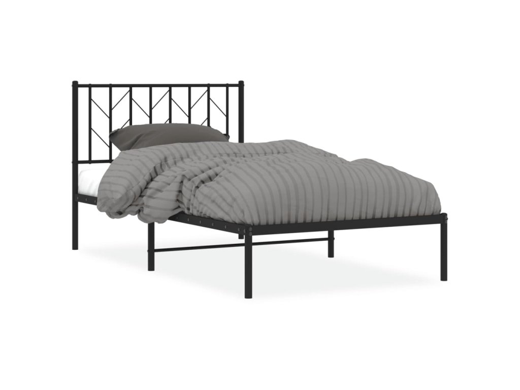 Kovový rám postele s čelem černý 100 x 190 cm 374431