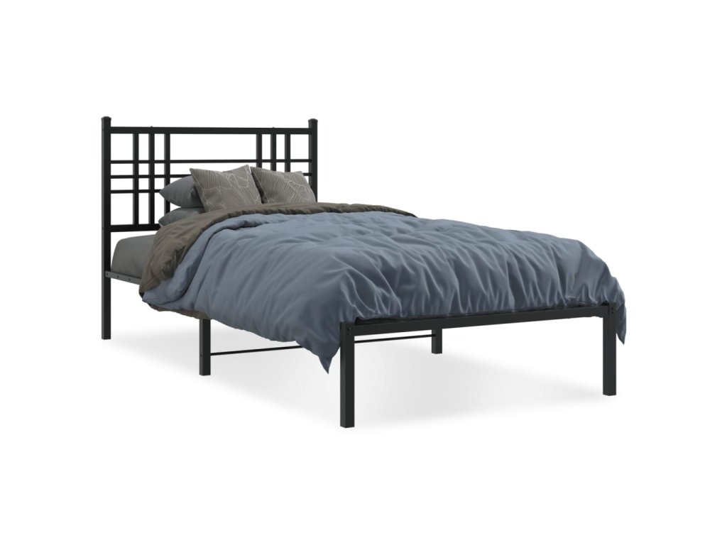 Kovový rám postele s čelem černý 100 x 190 cm 376318