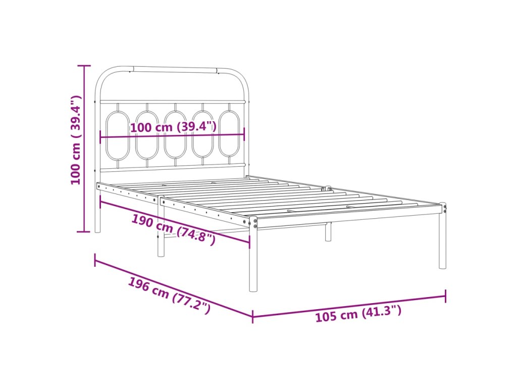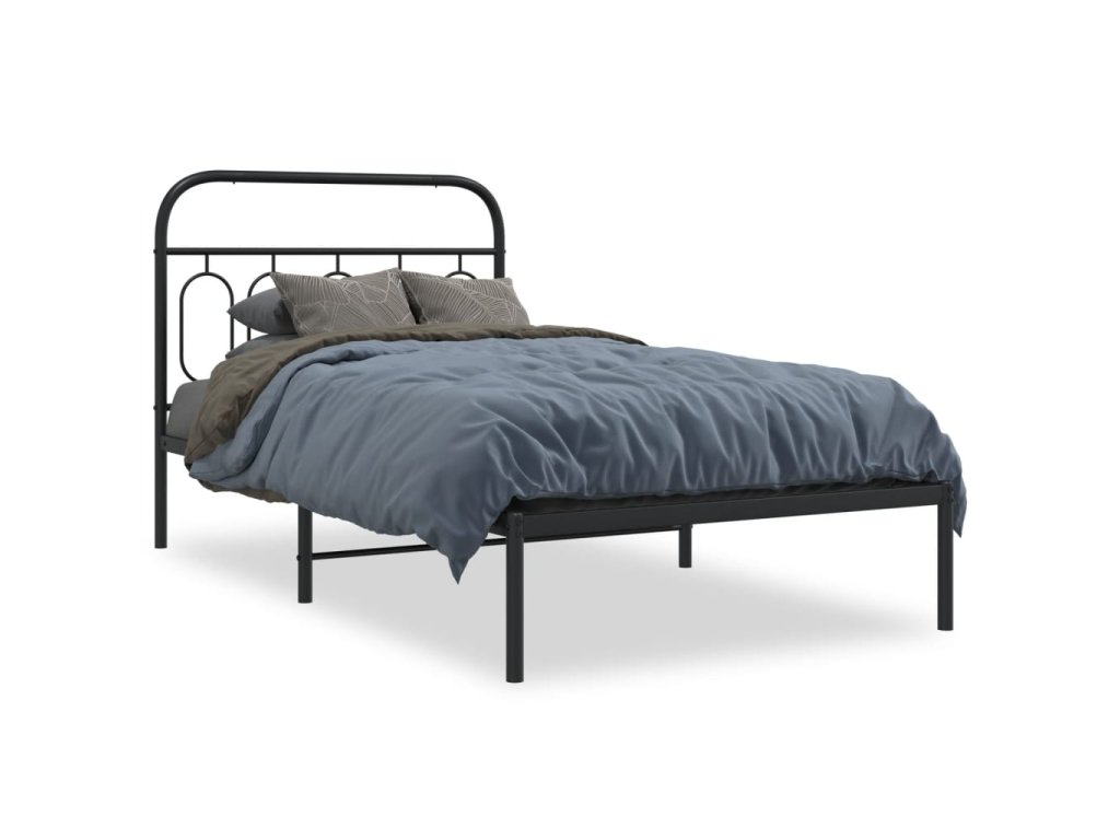 Kovový rám postele s čelem černý 100 x 190 cm 377111