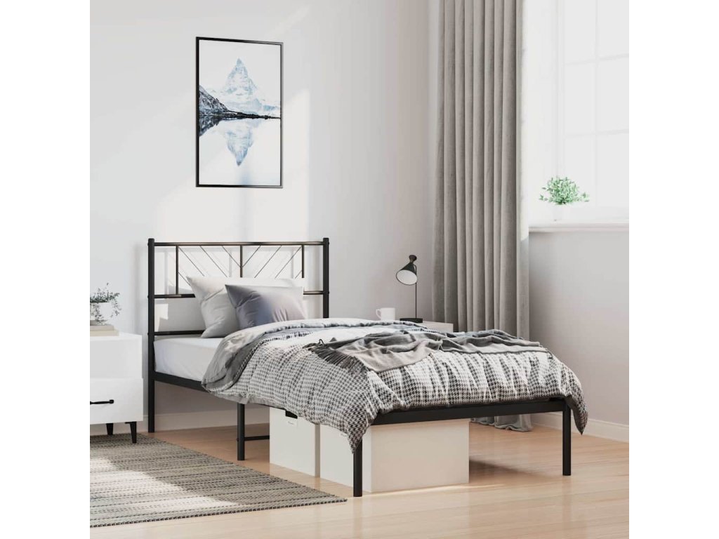 Kovový rám postele s čelem černý 100 x 200 cm 372174