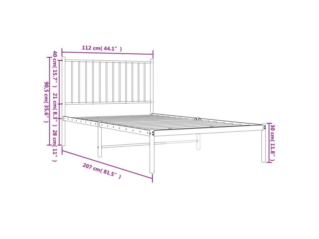 Kovový rám postele s čelem černý 107 x 203 cm 350860