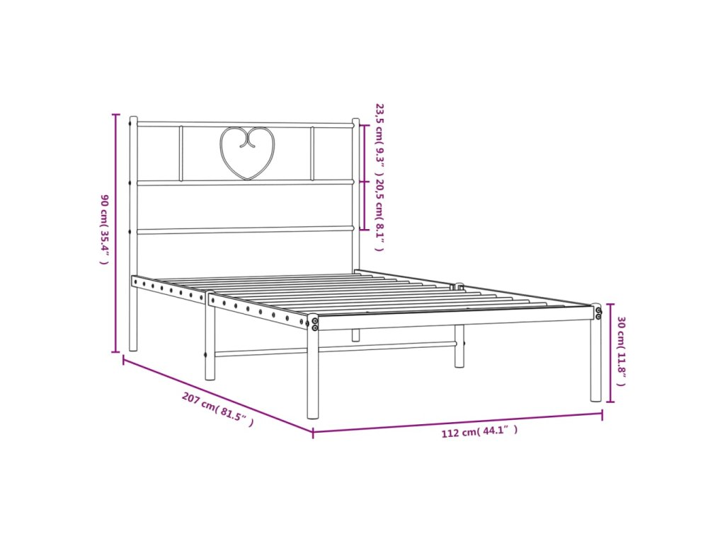 Kovový rám postele s čelem černý 107 x 203 cm 355459