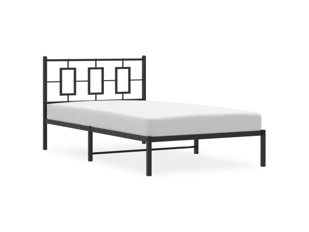 Kovový rám postele s čelem černý 107 x 203 cm 374237