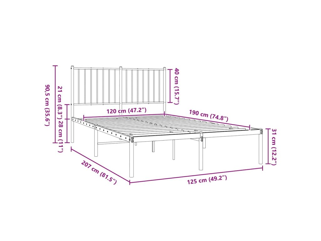 Kovový rám postele s čelem černý 120 x 190 cm 350861