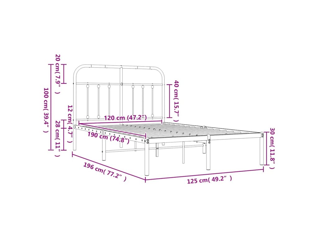 Kovový rám postele s čelem černý 120 x 190 cm 352575