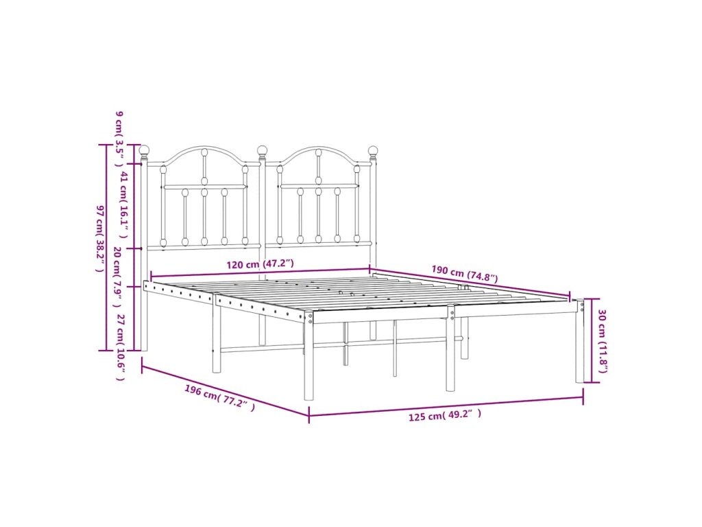 Kovový rám postele s čelem černý 120 x 190 cm 353436