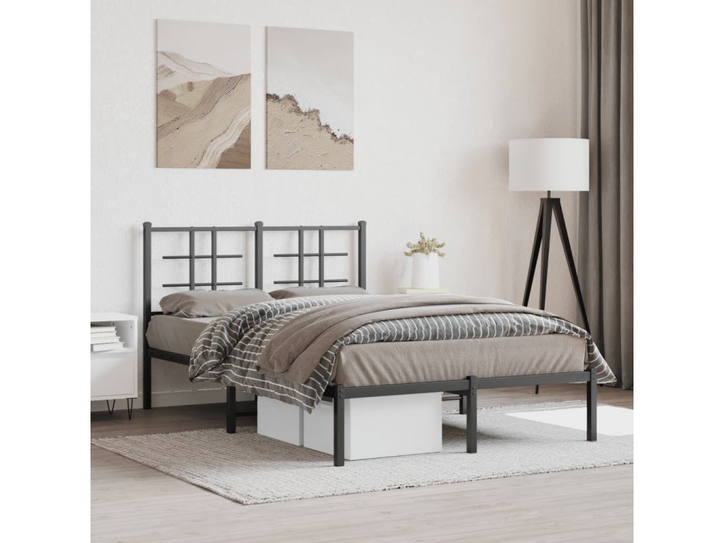 Kovový rám postele s čelem černý 120 x 190 cm 355558