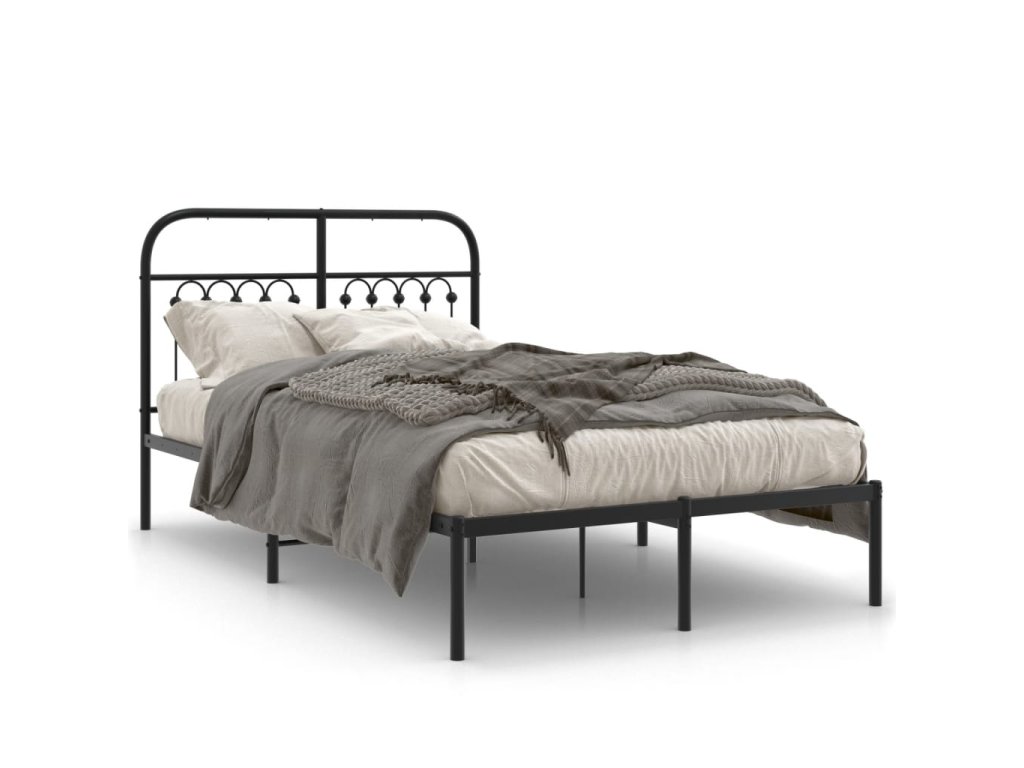 Kovový rám postele s čelem černý 120 x 190 cm 376597