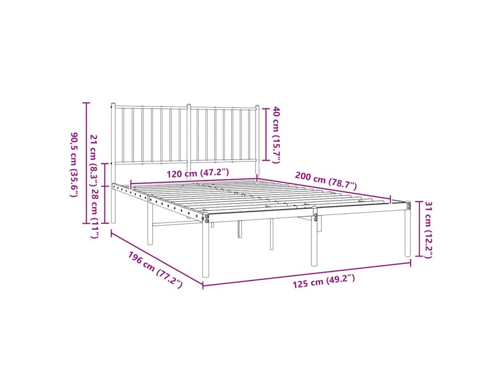 Kovový rám postele s čelem černý 120 x 200 cm 350862