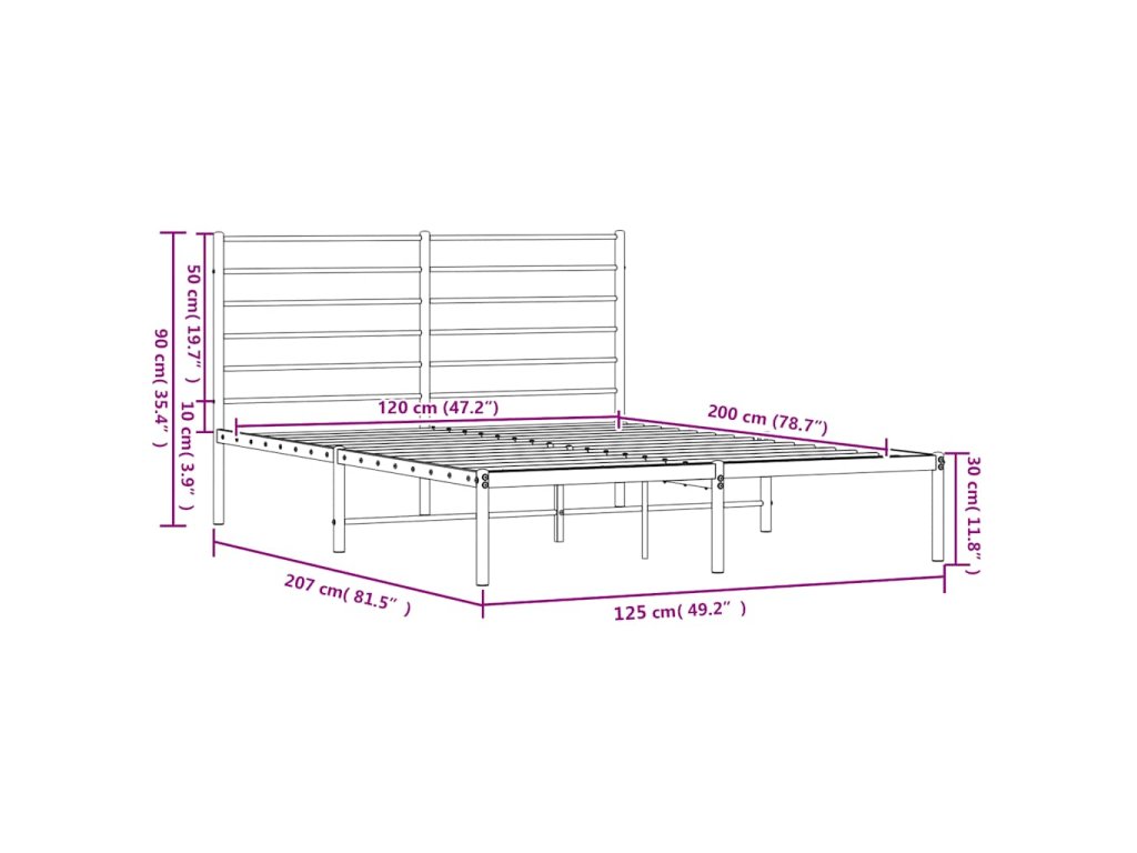 - Kovové lamely a nohy: Kovový rám postele je doplněn kovovými rošty a středovými nohami, které poskytují matraci tolik potřebnou oporu a prodyšnost.