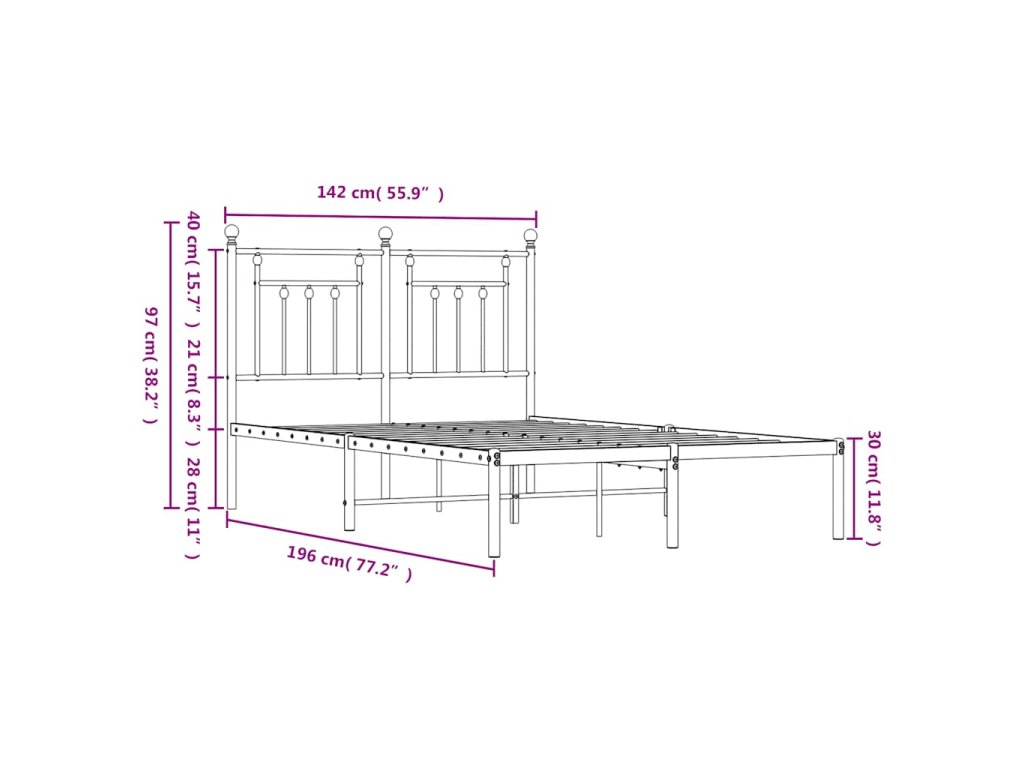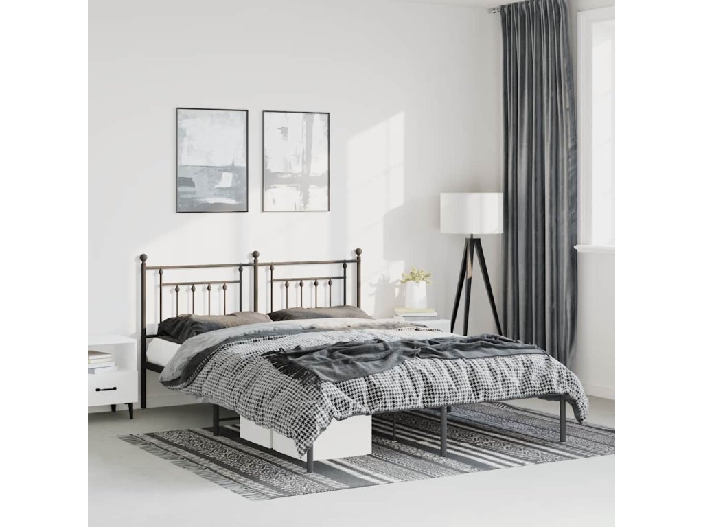 Kovový rám postele s čelem černý 135 x 190 cm 353536