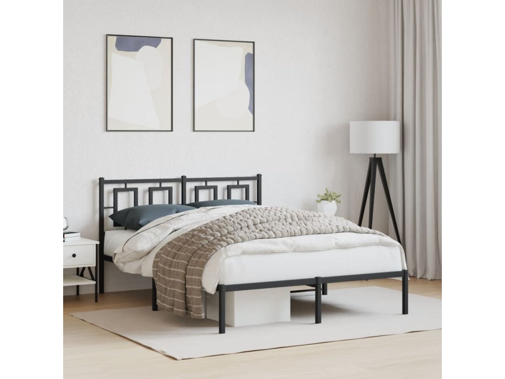 Kovový rám postele s čelem černý 135 x 190 cm 374240