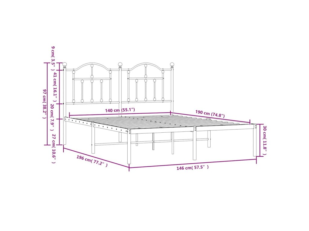 Kovový rám postele s čelem černý 140 x 190 cm 353439