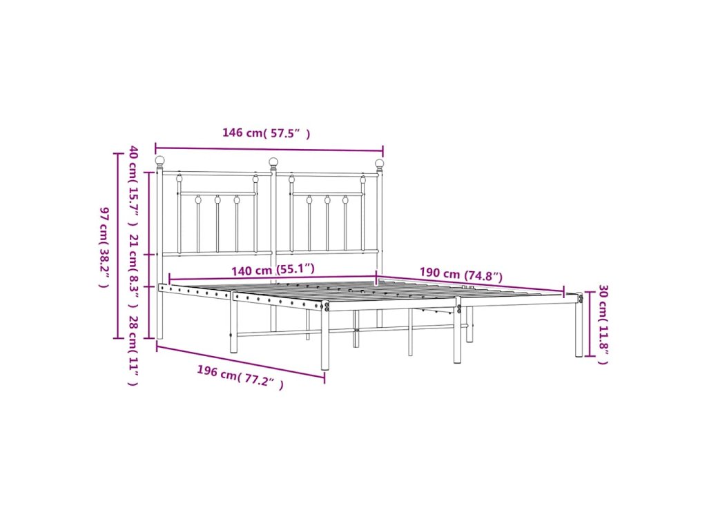 Kovový rám postele s čelem černý 140 x 190 cm 353537