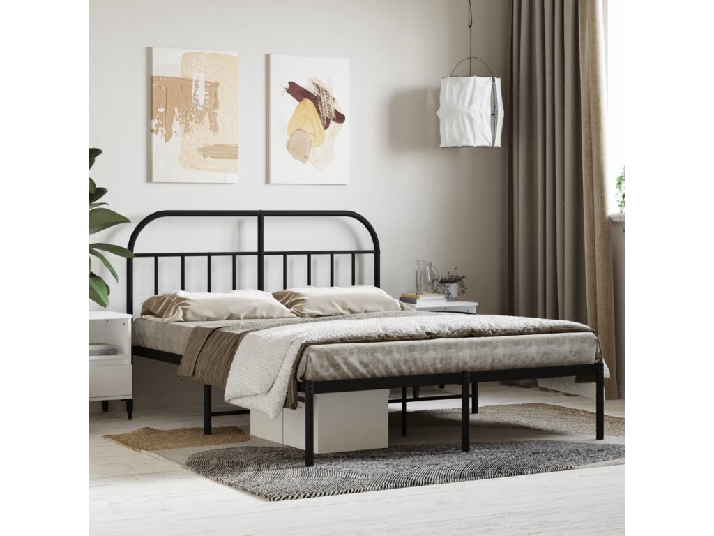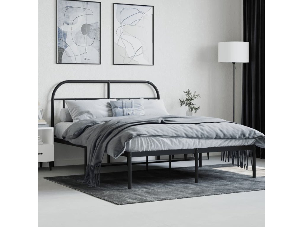 Kovový rám postele s čelem černý 140 x 190 cm 353635
